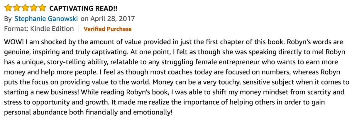 “Working with Robyn was the best decision I've made so far in my career! I was losing money in my business when I first started and now have made over $50,000 in the last 6 months!